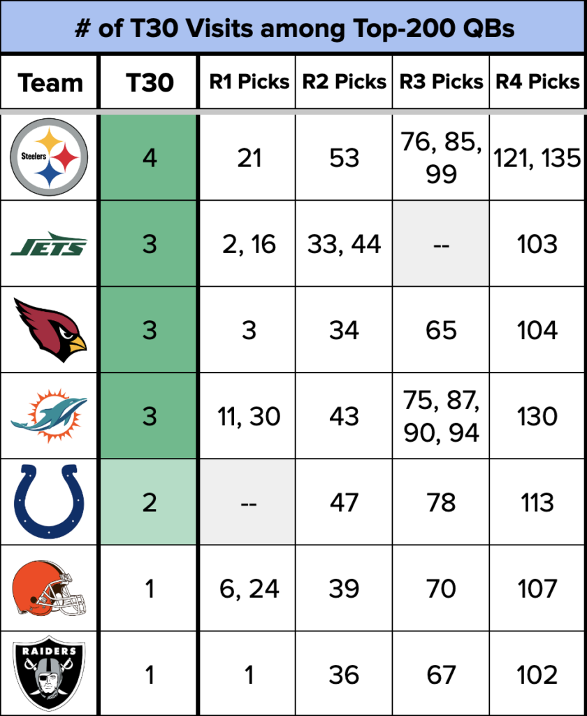 Before we dive into the team-based data, this point is worth highlighting in a year with very few QB prospects.