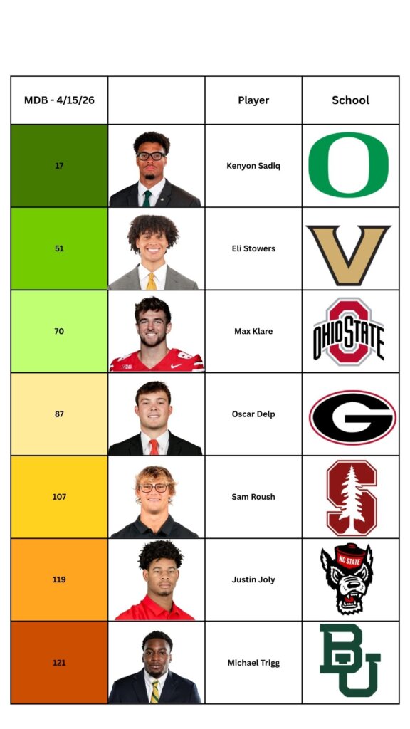 You will notice very little discussion about Georgia’s Oscar Delp, even though he is currently being mocked higher than Roush. Delp was at one point the consensus top TE recruit in the 2022 class, but he found himself behind Darnell Washington and Brock Bowers, which certainly limited his playing time. He was severely underused at Georgia, finishing 2025 with only 20 catches on 28 targets for 261 yards and one TD. He is a fluid movement with solid hands, but the lack of production can’t be ignored.